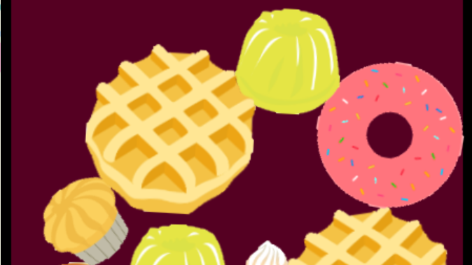 • スイーツをクリックすると、それが画面上に落ちてきます。
